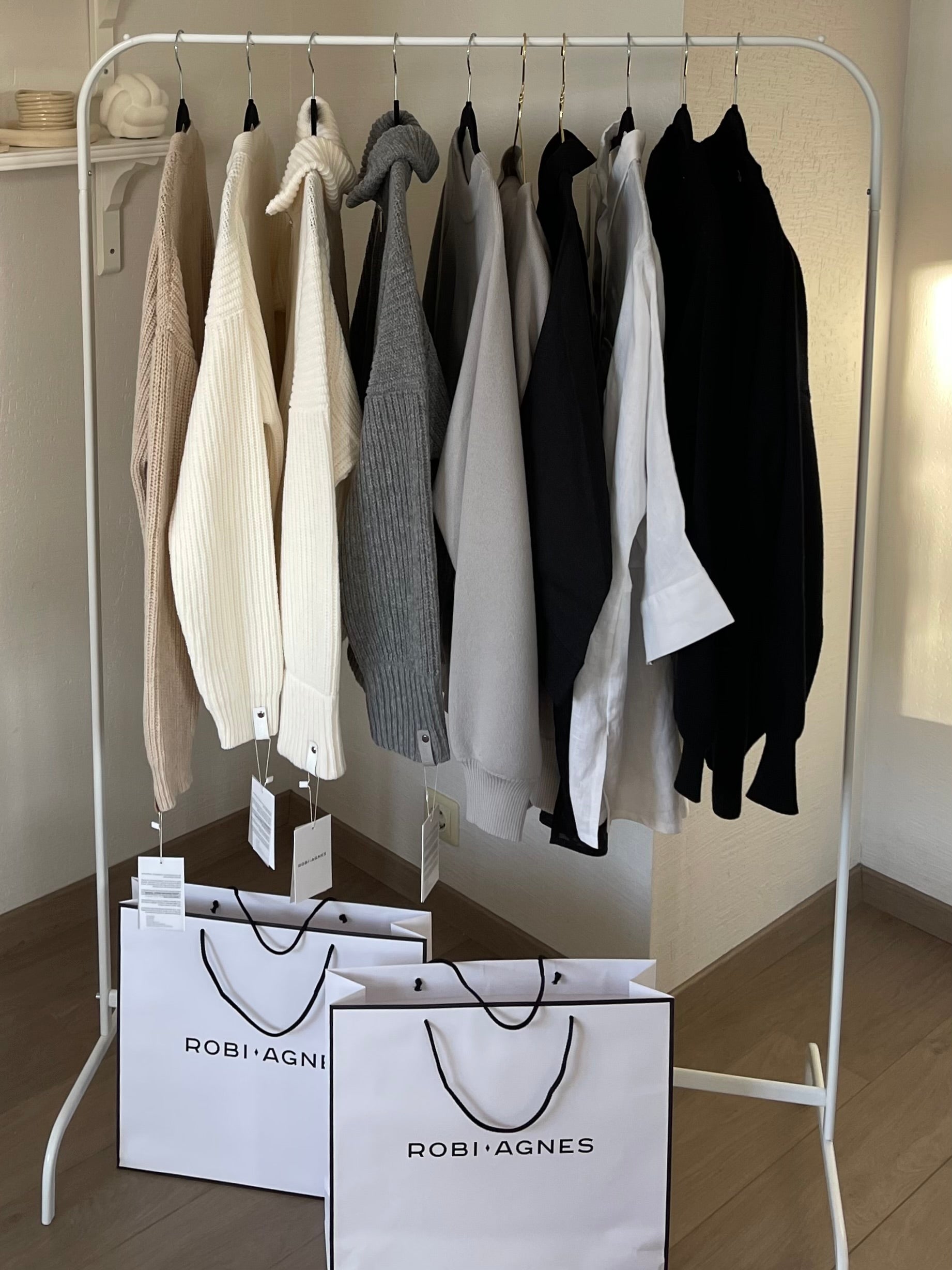 ROBI AGNES – šiuolaikiškas požiūris į asmeninį, laikui nepavaldų garderobą. Tai nuolatinė kelionė link tvaresnės mados industrijos ateities. Visi gaminiai gaminami Lietuvoje iš aukščiausios rūšies itališkų siūlų.